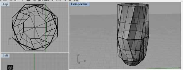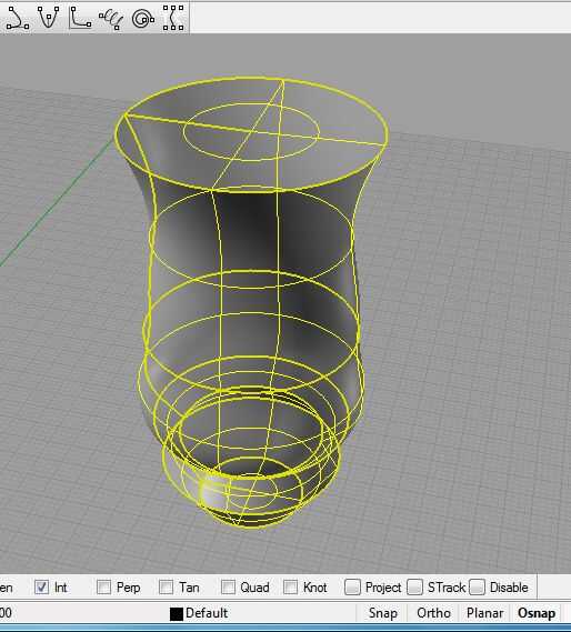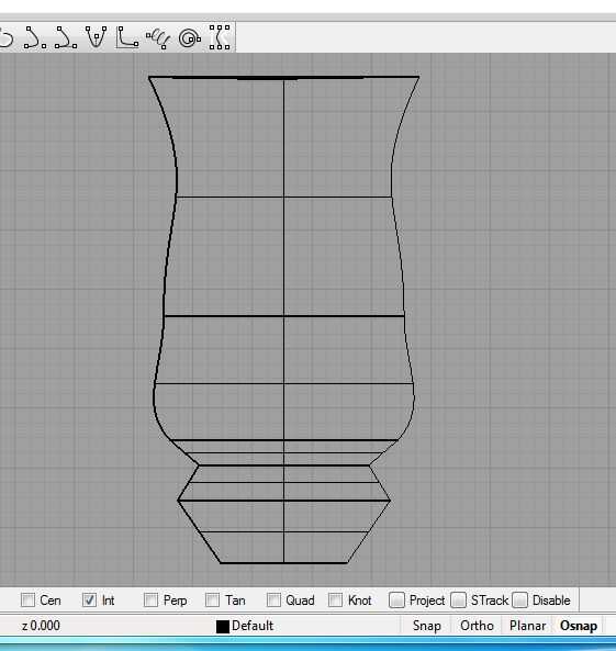 Para vaso 1, comencé con la creación de una línea de perfil para el formulario. De esto era una simple cuestión de usar el comando "Girar" para crear un perfil de 360 grados de la línea. Después de esto el último paso es para "tapar" la forma para que pueda crear un molde de la superficie cerrada.