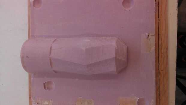 Es importante cuando se muele objetos de rino para tener un guía o instructor para ayudar con todos los detalles finitos. Para el fresado a mis vasos utilicé instalación espuma, pegamento del gorila y madera contrachapada. He creado planos específico para mi modelo dementions, luego pegar dos capas de espuma a la Junta. Después de estos secados por 24 horas fue capaz de poner mi archivo en el molino y crear mis formas. Esto ocurrió en dos etapas, desbaste y acabado. Una vez que las formas fueron molidas hacia fuera entonces fui capaz de moverse en la fabricación del molde.