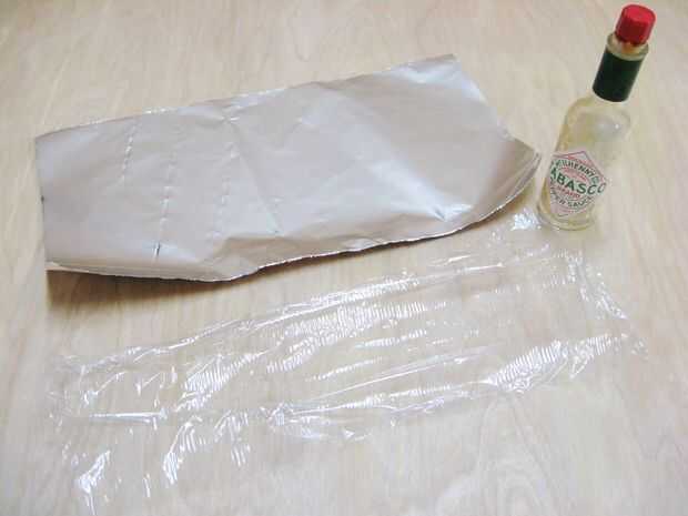Para ello, envuelva en una capa estrecha de cling wrap seguido firmemente una capa de papel de aluminio.