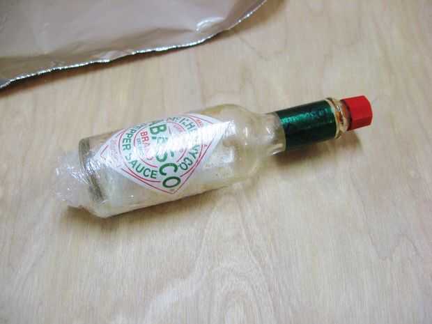 Este método solo rápidamente arruinaría las etiquetas de papel en la botella, así que para mantenerlos intactos que necesita para protegerlos de la humedad y el calor.