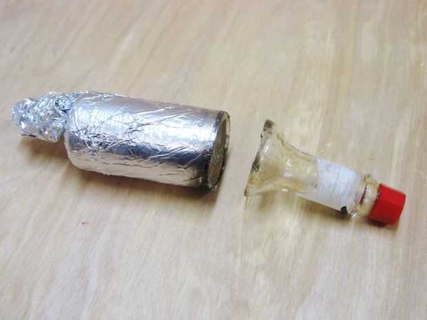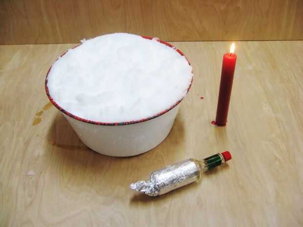 Para calentar y enfriar la botella, he utilizado una vela y un recipiente lleno de nieve de verdad (tenemos un par de pies en la tierra donde vivo, ¿por qué no?)