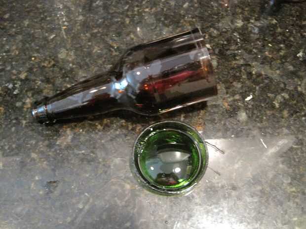 aprender a hacer vasos para beber de botellas usadas de cerveza o botellas de vino.  Todo lo que necesita es alguna cadena, acetona, agua y hielo, encendedor y una superficie no inflamable para trabajar.