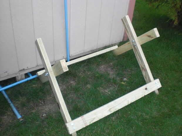 4. Corte la parte inferior del lado de cada X en un ángulo de 45 grados (cortar un triángulo) por lo que la parte inferior descansará uniformemente sobre el terreno.
