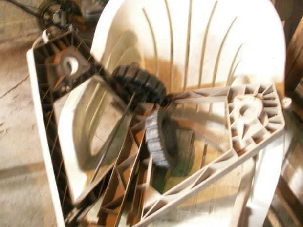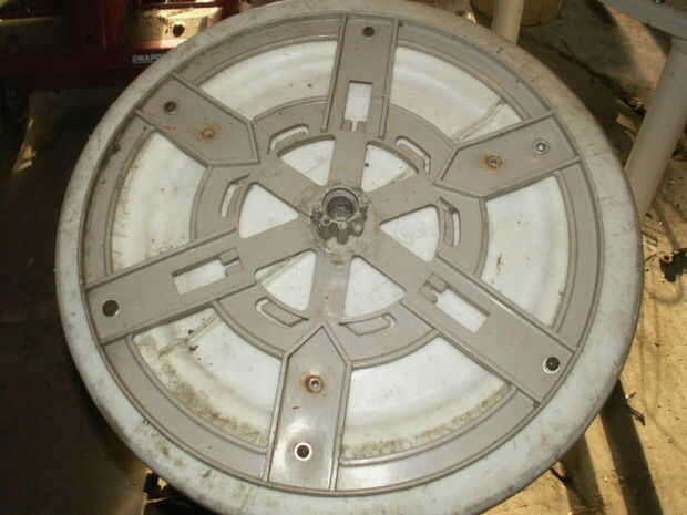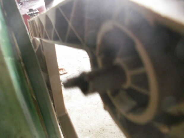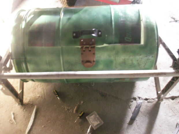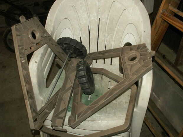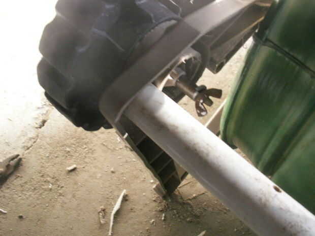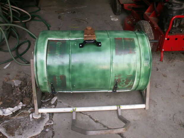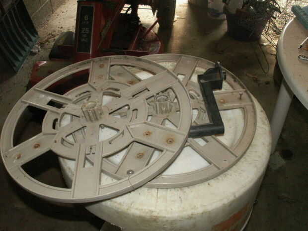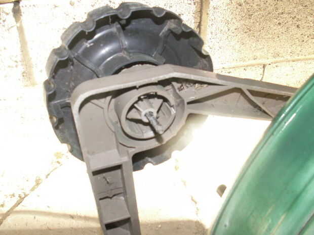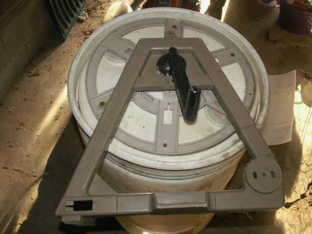 Un soporte de manguera de jardín rodante (tenía uno aherrumbrar hacia fuera en el patio)