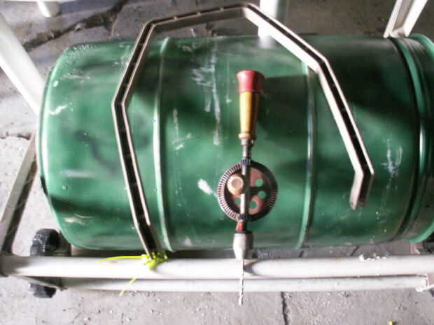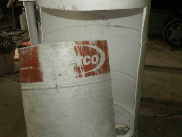 Un barril de plástico (que se encuentra en el lado de la carretera)