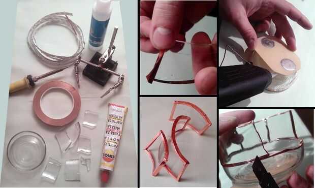 -cinta de cobre adhesiva (comprado en alguna tienda para vitral y vidrio hecho a mano, probablemente se puede encontrar en otros lugares)