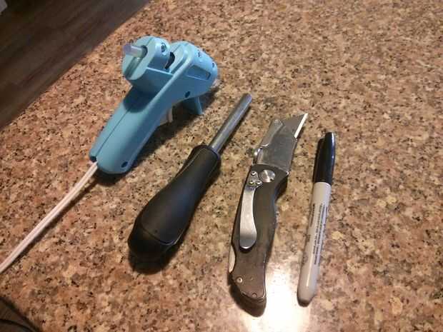 supply's... corte de caja / cuchillo pistola y pegamento caliente Sharpie tarro de masón u otro buque luz solar barata destornillador es opcional, pero facilita el montaje.