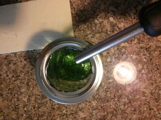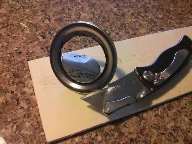 Usé un cuchillo para cortar un contorno áspero del agujero. luego pinchar una sección pequeña y la tapa debe pelar lejos como una tapa de la sopa.