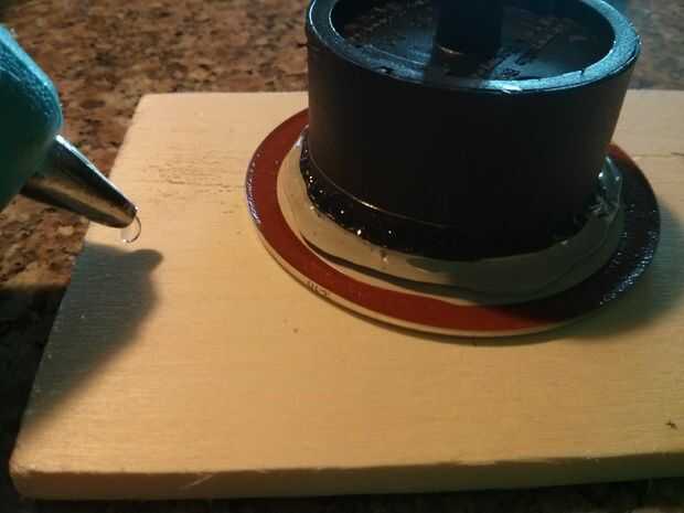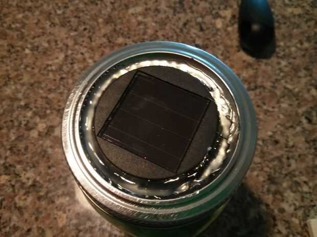 Cuando esté satisfecho con el ajuste, coloque una bonita tira de pegamento caliente completamente alrededor de su luz en la parte inferior de la tapa y otra vez en la parte superior de la tapa.
