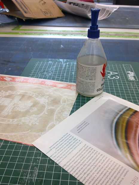 Poner pegamento en la parte inferior de los papeles y pegarlos juntos.