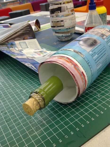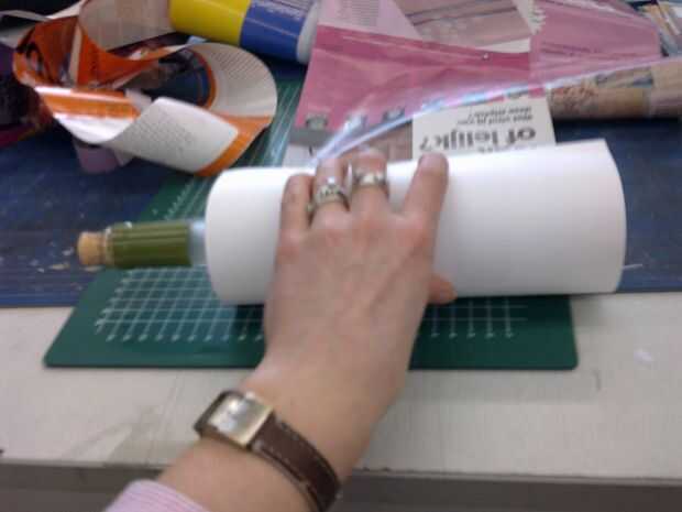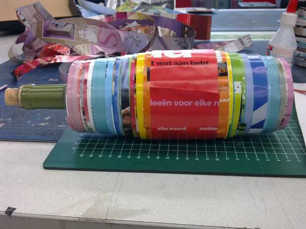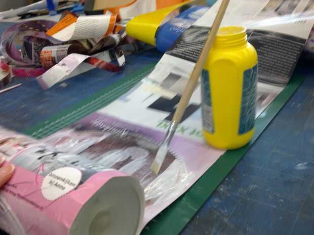 Mientras tanto tienes que encolar el papel con pegamento para madera (para la fuerza y resistente al agua) y pegarlos unos a otros.