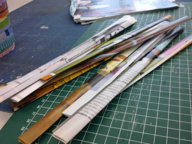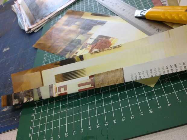 Tomar la mitad de un papel de revista, corte en la longitud y plegar con una anchura de un centímetro.