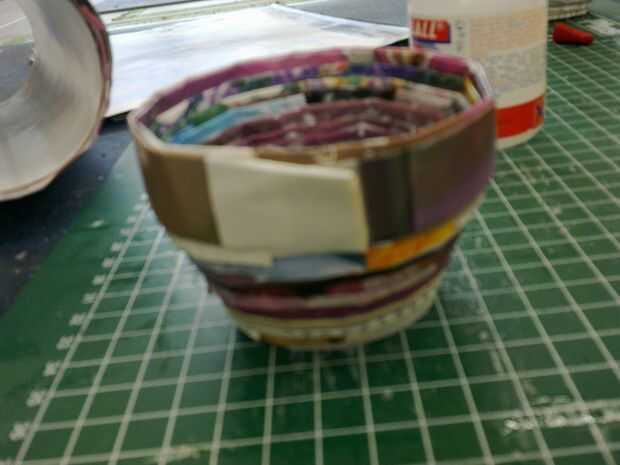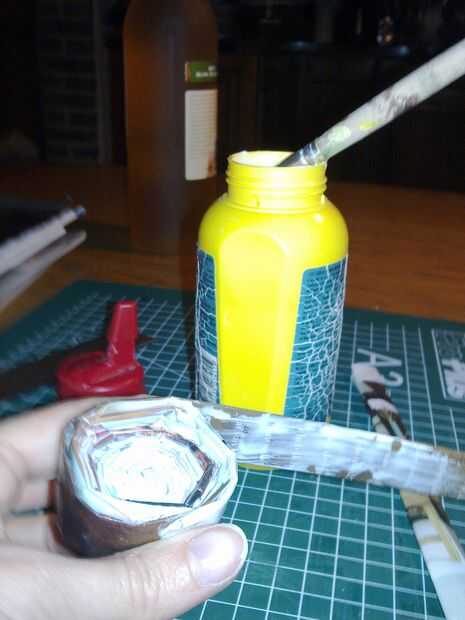 Cuando tenga el diámetro del vaso, pegue en el Jarrón con pegamento para madera.