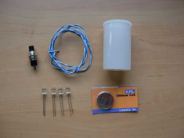Cómo construir un Mini LED linternaPara construir una mini linterna de LED necesita:-un trozo pequeño de cuerda-2 palitos-claro bola (dividida en dos)-Luz LED (cualquier color)-resistencia-2 alambres (con los extremos pelados de ambos lados)-interrup