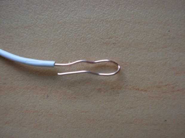 Tira de los aislamientos en el extremo. En el extremo de un cable tira un poco más de aislamiento y doblar el alambre sin aislar. (Foto 2)