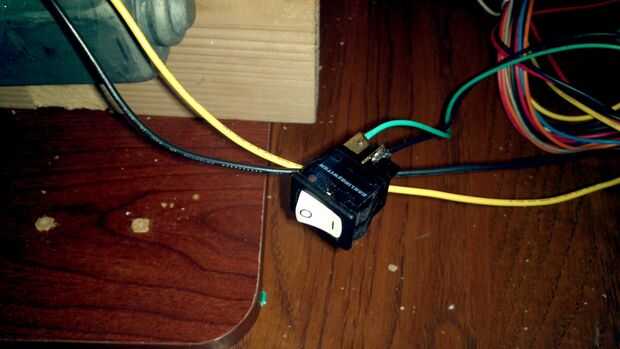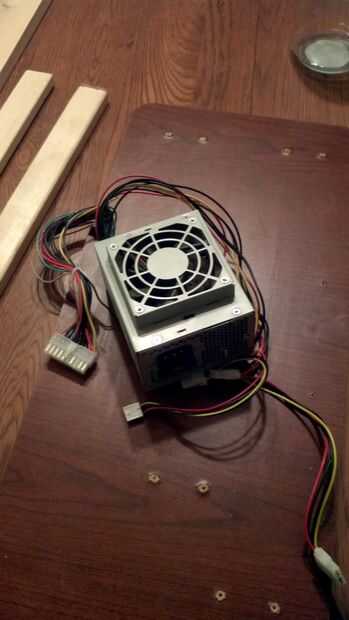 Echar un vistazo al cableado de alimentación PC power. Debe haber un solo cable verde que va en el bloque conector grande. Es el "encendido" - permite a la Motherboard, Tarjeta madre apagar el suministro de energía cuando la PC se apaga. Clip que los cables y uno de los cables negros (masa) cercano. Conectar al interruptor de encendido (cualquier interruptor hará). Yo había soldado mío en lugar de comprar clips de conector de horquilla.