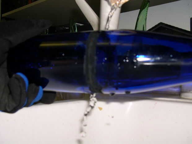 * Nota: también he tenido éxito calentando la botella en el horno durante unos 5 minutos a 225 F y verter el agua sobre la línea. Necesitará unas cuantas botellas para perfeccionar el método de la ruina.
