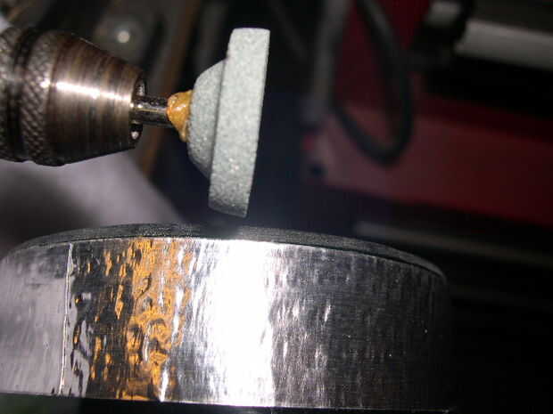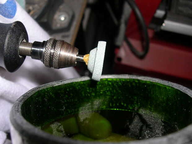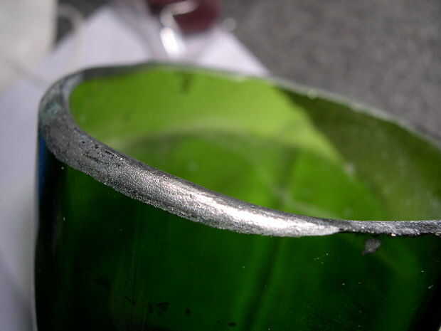 También puede utilizar una rueda de alambre en el labio, usted obtendrá un borde brillante de plata sobre el vidrio que se ve realmente genial.