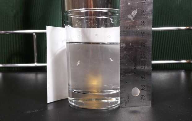 Su cristal muestra en una superficie plana y verter 3 onzas de agua. Una vez que se ha establecido la línea de agua, marque cuidadosamente la parte exterior del vidrio con un marcador no permanente.