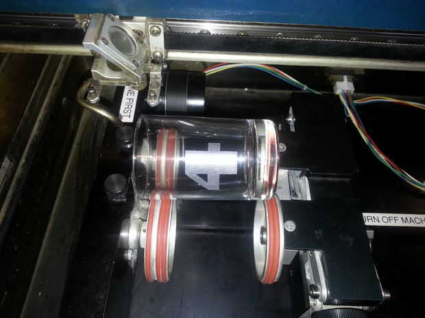 Configurar el accesorio rotatorio de la máquina lasercutting usted tengan acceso a y prepara tu primer vaso para el corte.