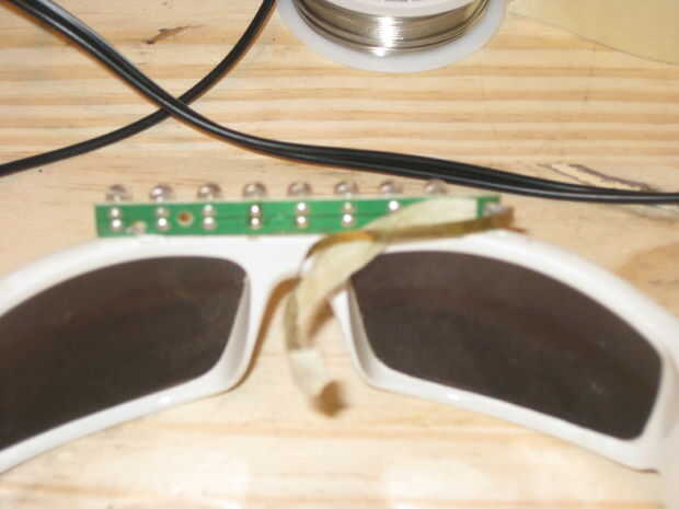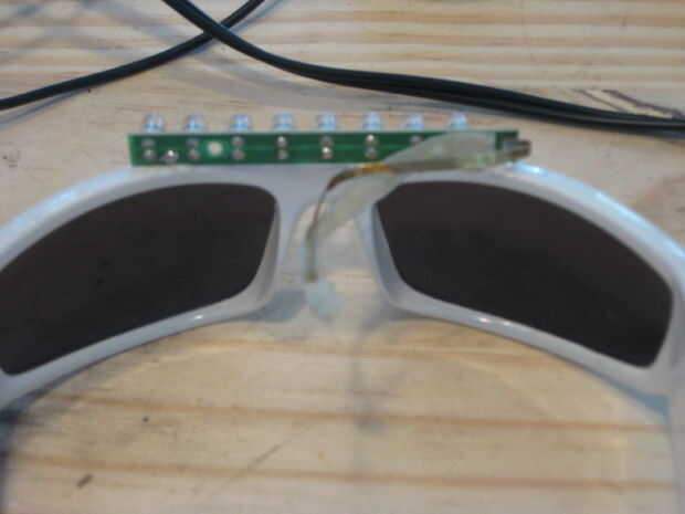 Pegar el LED en la parte superior de las gafas. Su elección de la dirección.