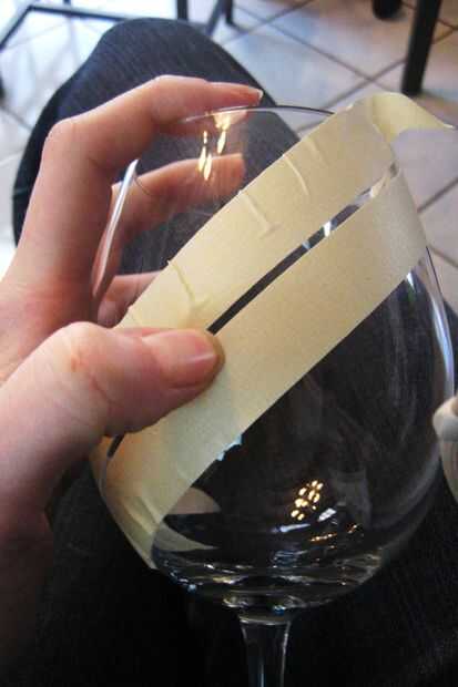 Utilice cinta de enmascarar o plantillas para marcar donde quiere estar. Asegúrese de que usar las uñas o un palito para presionar los bordes hacia abajo sobre el cristal.