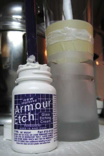 y permita que la solución de la aguafuerte del vidrio durante 2 minutos.