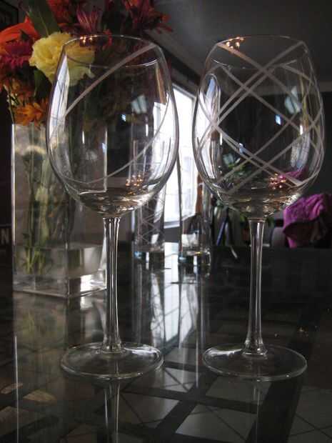 finalmente pretendo grabar nuestras gafas tostados para la recepción, pero Tomé fotos de mi "primer intento" en el cristal de la práctica mi kit de vino, como una montaña. Y realmente, puede hacerlo en el posavasos, espejos, vidrios, marcos de f