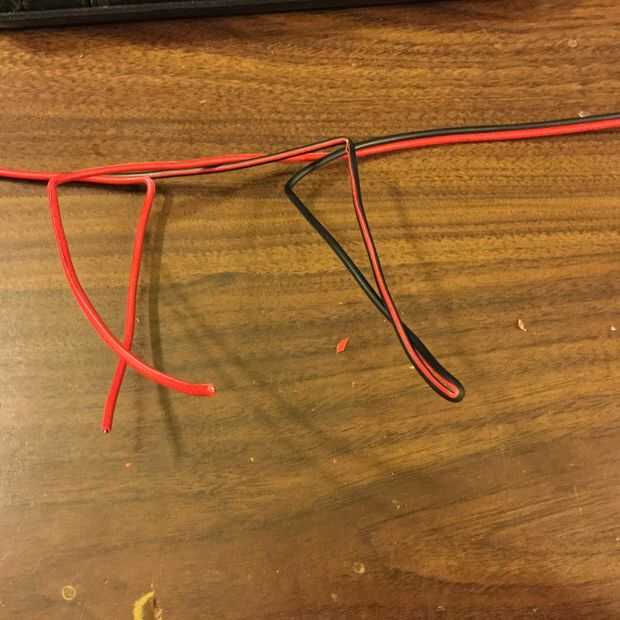 Tenga en cuenta que solo corta el cable rojo, no el negro grande uno.