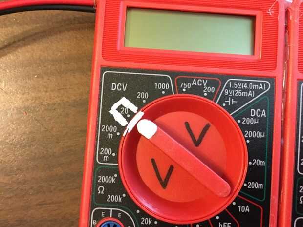 Rotativo 2 / set el medidor de mano izquierda cambiar a 20 DCV (de modo que la flecha en el interruptor giratorio puntos a los 20). (ver foto)