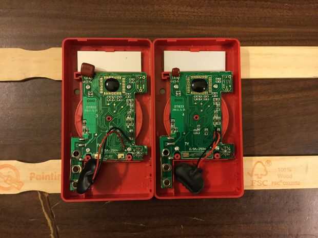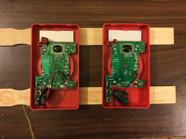 El medidor de salida a la izquierda, en el metro a la derecha Asegúrese que los conectores de alimentación de 9 voltios fuera del camino. Deslice ambos metros, una prueba de ajuste.