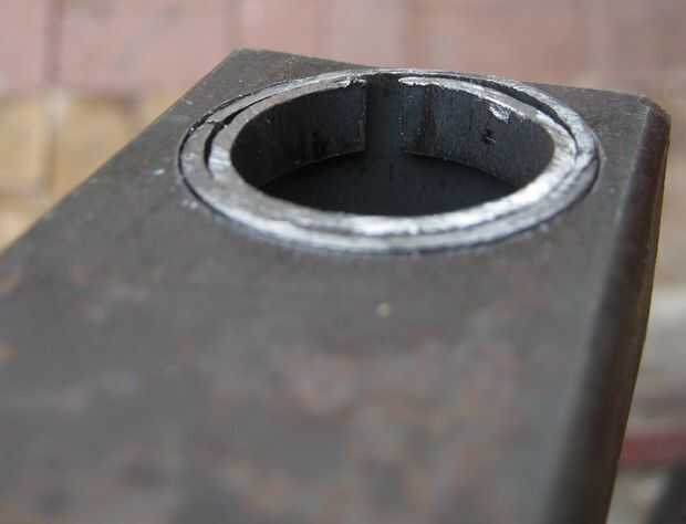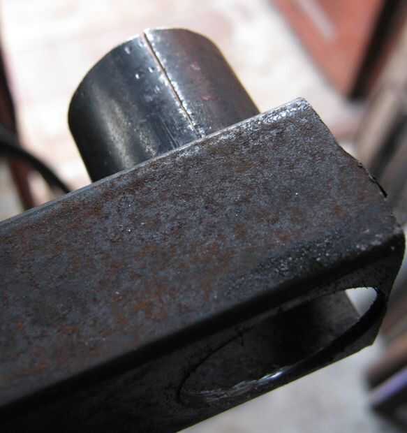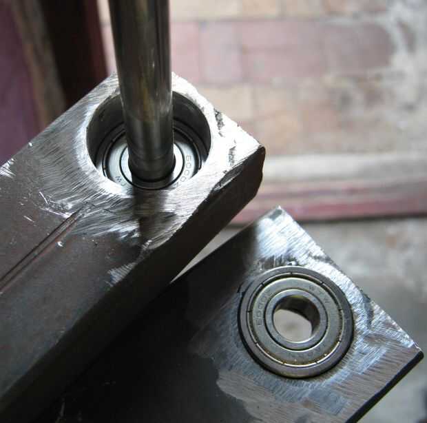 Para los huecos de cojinete, cortar un trozo de un tubo de acero, exprimido cerrado alrededor del rodamiento y deslizarse en el agujero en los extremos de los brazos del travesaño.