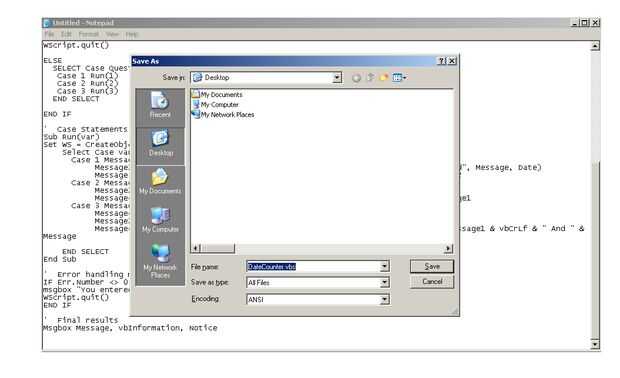 5) dar el archivo un nombre por ejemplo DateCounter.vbs,