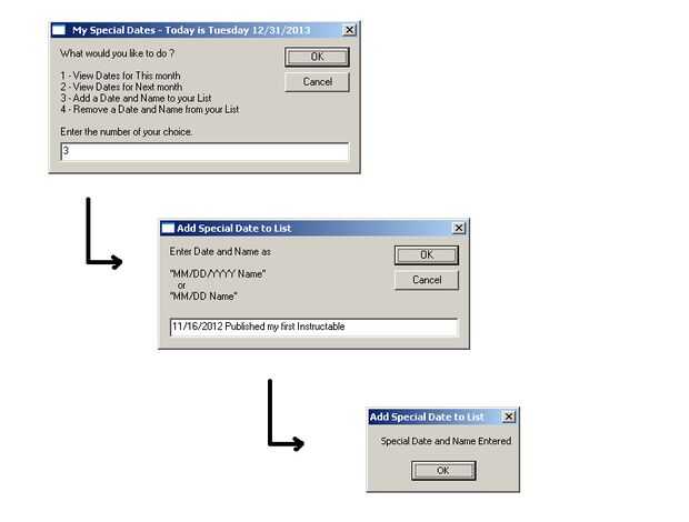 Usted se le pedirá que escriba en el mes/Día/año y el nombre del día especial. Escriba la fecha y el nombre y haga clic en "OK".