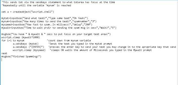 Básicamente le pedirá qué texto a enviar, cuántas veces usted quiere enviar y cuánto tiempo debe esperar antes de que empiece a enviar el texto.