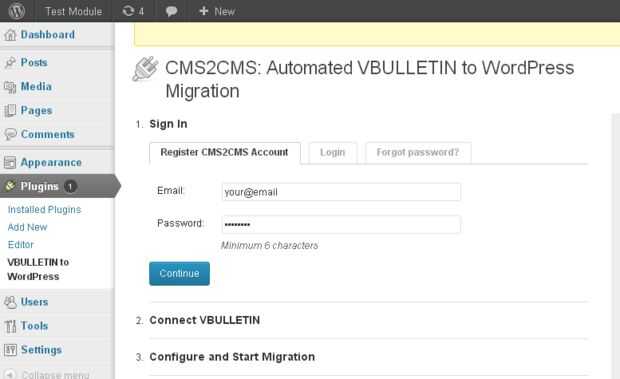 Con el fin de ir más allá con la conversión, Regístrate en CMS2CMS. Proporcionar su email y contraseña y eso es todo.