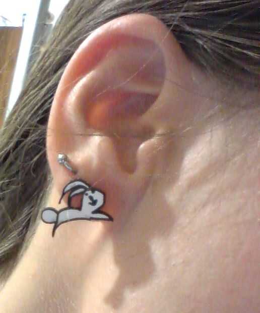También es un par de tacos de conejo dibujo que hice usando el mismo método, sólo sin el borde compensado porque no creo que necesita mucha más rigidez. Sólo se pegan en earstuds plana "pad" con buen pegamento E600 ol '.