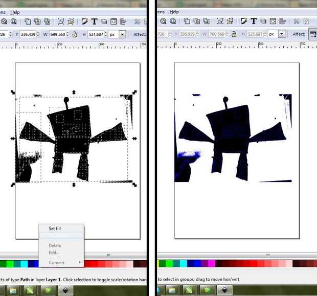 Una vez que se "romperán" el vector, cambiará a una mancha negra grande. Esto es porque las piezas que eran una vez que los agujeros ahora son formas negras independientes.