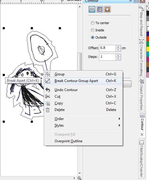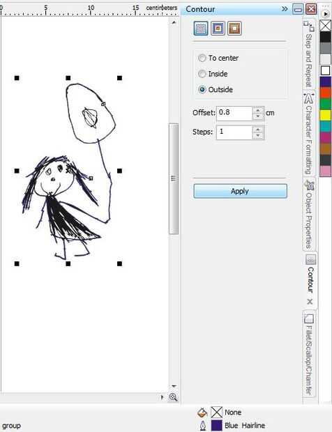 Usted puede decidir sobre la compensación basada en preferencias personales. Si tienes un dibujo con formas desconectados, es una buena idea para hacer el contorno bastante grande que conecta el espacio entre las formas desconectados. Puede que necesite utilizar CTRL + Z un par de veces para probar diferentes configuraciones de contorno.
