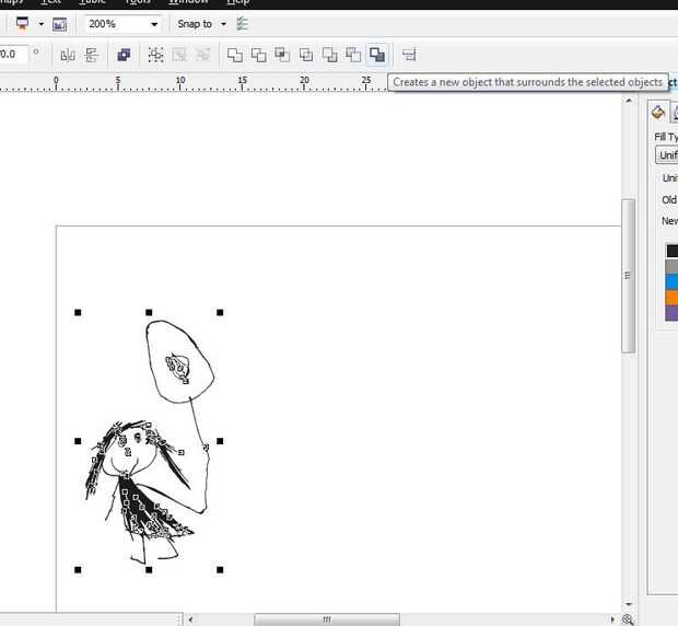 Eliminar el límite original y ahora tendrá un perfecto contorno de desvío alrededor de tu dibujo. Usted puede también poner en orden este contorno usando la herramienta seleccionar nodo a eliminar algunos de los pointyness o redondear esquinas filosas.