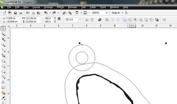 Seleccione el círculo externo del lazo y la frontera contorneada que acaba de realizar, haga clic en "soldar" y ver cómo conectar por arte de magia.