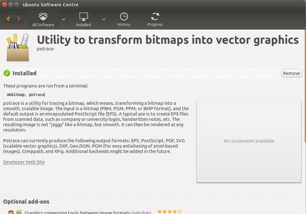Tenga en cuenta que los usuarios de Linux pueden instalar potrace desde su gestor de paquetes. Por ejemplo, los usuarios de Ubuntu pueden instalar potrace escribiendo "sudo apt-get install potrace".