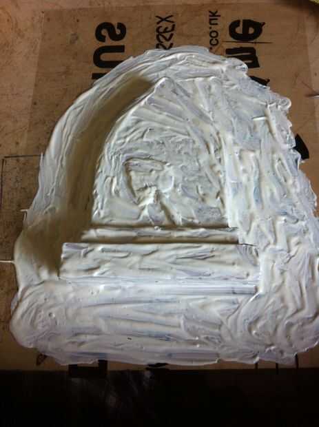 una capa de látex sobre el molde todo asegurándose de que conseguirlo todos los detalles de la pintura es la capa más importante.