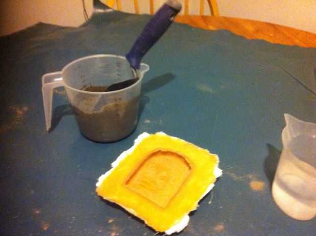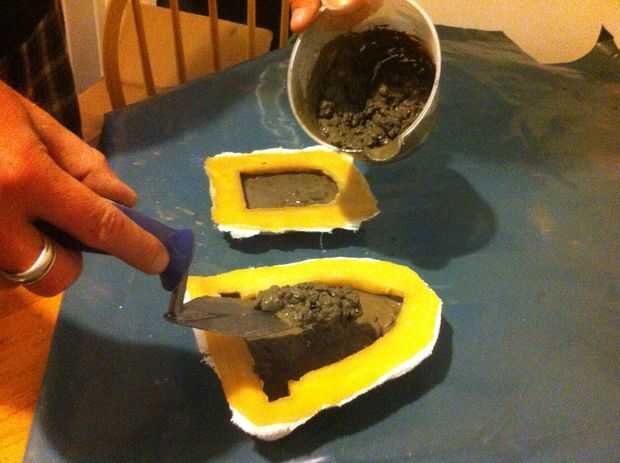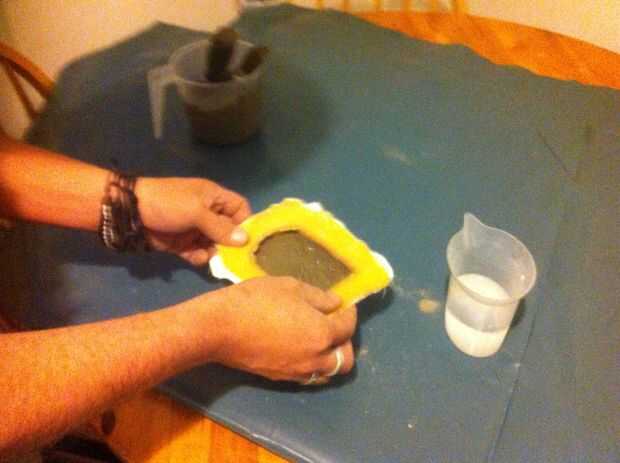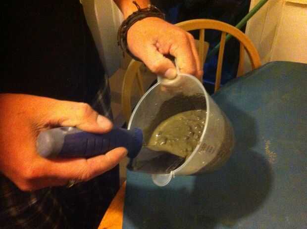 Ahora usted necesita mezclar un poco de lo concreto la mezcla apenas consigue una pequeña cantidad y ponerlo en la jarra, tenemos que hacer esta muy mojada, yo la llamo la capa de belleza usuarios concretos llaman una mezcla de la mezcla la consistencia de la sopa si se puede tratar y mantener tantas piedra fuera de él como sea posible , el propósito es obtener concreto en los detalles del molde. sólo necesitas un poco en el molde para cubrir el fondo y luego agítelo para todas las grietas del molde.