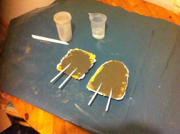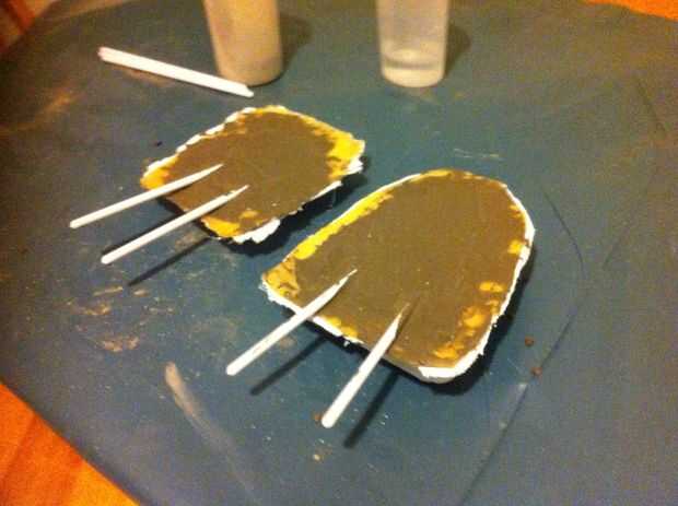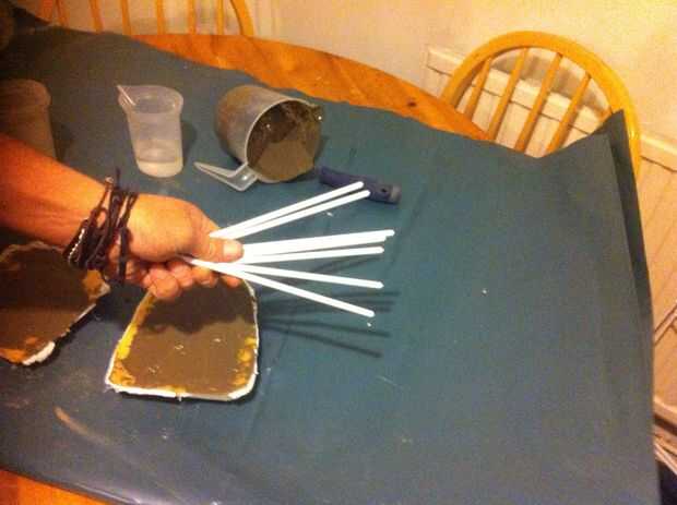 Ahora tenemos que introducir las varillas de plástico, puede usar plumas viejo pero quitar la tinta en bits desde dentro de ti no desea esto en su suelo.