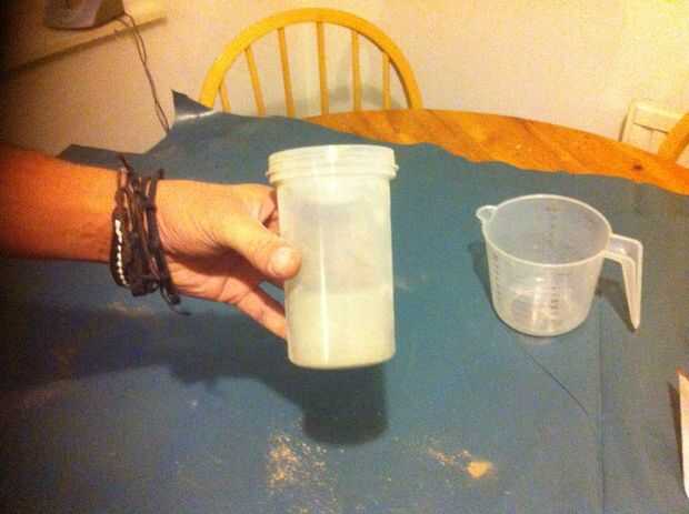 ahora necesitas añadir más concreta de la mezcla a lo que tienes en el jarro que usted necesita para que sea una mezcla más gruesa su después de una mezcla que es la consistencia de la mezcla de torta, cuchara en el molde y empújelo hacia abajo para conseguir todo en el molde esto también ayuda a traer las grasas de lo concreto a la superficie y el exceso de agua en la parte superior.