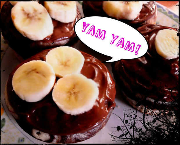 A la decoración de los muffins he utilizado un vegano cacao avellana propagación y rodajas de banana, pero usted puede poner lo que te gusta! Si usted quiere hacer a su propio vegano de cacao avellana propagación, puede probar esta receta: