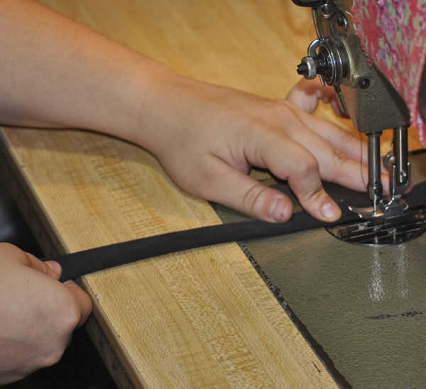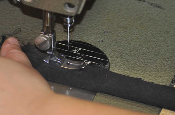 3. doble a la tela por la mitad lo largo y cose los extremos juntos.