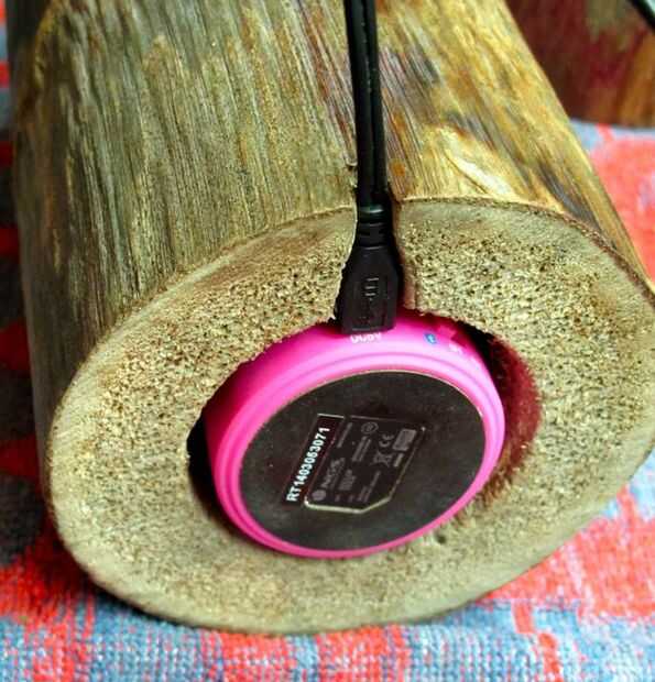 Crear una pequeña muesca en la parte inferior del amplificador del altavoz (SA) para que el cable usb para conectar al altavoz inalámbrico para el modo de carga.