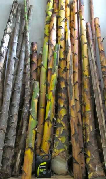 Antes de comenzar con este proyecto se encuentra una flor de agave seco. Hay muchas variedades de agave y usé Agave Americana. El tallo de la flor debe ser recta y disminuyendo de diámetro porque con este diseño de modular una sección tendrá que ser más grande que el otro para encajar correctamente. Debe haber ningunas grietas abiertas en la madera, aunque partiendo la corteza es permitido porque debajo todo que feo quemado envoltura es hermosa madera dura. También el corcho interior debe estar intacto sin daños por agua o putrefacción. He seleccionado la pieza teniendo en cuenta que el agujero más grande vio que tenía que medir 121mm. La pieza que elegí cónicos de diámetro de 20cm a 10cm.